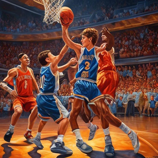 It’s Friday evening, two weeks before Good Friday and Joey’s 9th grade basketball team is playing an amazingly close and competitive game against Golver’s 9th graders. The game is coming down to the final few seconds and Golver is leading by two points. Joey has the ball at the top of the key. All game long Joey has clearly been the best player on the court. I’ve watched him in other games before, but to be honest I was usually at least a little drunk then, and I never realized how good he is; I see now why Joey is the captain.